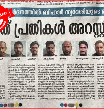 ഉത്തർപ്രദേശിൽ നിന്നുള്ളതാണ് എന്നവകാശപ്പെട്ട് ഒരു സംഘം ചെറുപ്പക്കാര് ആർഎസ്എസിനെതിരെ അപകീര്ത്തികരമായ മുദ്രാവാക്യങ്ങൾ വിളിക്കുന്ന ദൃശ്യങ്ങള് പ്രചരിക്കുന്നുണ്ട്. പ്രചരണം ചെറുപ്പക്കാര് ആര്എസ്എസിനെതിരെ തെരുവില് മുദ്രാവാക്യം വിളിക്കുന്ന ദൃശ്യങ്ങലാണ് ആദ്യം കാണുന്നത്. പിന്നീട് സംരക്ഷണ കവചം ധരിച്ച പോലീസ് സംഘം എത്താനും യുവാക്കളെ അറസ്റ്റ് ചെയ്യുകയും ആക്രമിക്കുകയും ചെയ്യുന്ന ദൃശ്യങ്ങളും കാണാം. ഉത്തര്പ്രദേശില് ആര്എസ്എസിനെതിരെ അപകീര്ത്തികരമായ മുദ്രാവാക്യം വിളിച്ച ചെറുപ്പക്കാരുടെ ദൃശ്യങ്ങളാണ് ഇതെന്നും ഇവരെ അന്ന് വൈകിട്ട് തന്നെ പോലിസ് അറസ്റ്റ് ചെയ്തു കൊണ്ട് പോകുന്ന ദൃശ്യങ്ങളാണ് പിന്നീട് കാണുന്നത് […]