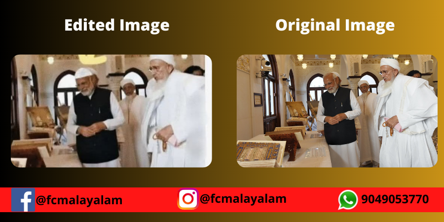 ചിത്രത്തിനെ ഗൂഗിളിൽ റിവേഴ്സ് ഇമേജ് അന്വേഷണം നടത്തിയപ്പോൾ ഈ ചിത്രം എഡിറ്റഡാണെന്ന് കണ്ടെത്തി. യഥാർത്ഥ ചിത്രം പ്രധാനമന്ത്രി നരേന്ദ്ര മോദി 10 ഫെബ്രുവരി 2023ന് അദ്ദേഹത്തിൻ്റെ X അക്കൗണ്ടിൽ നിന്ന് പോസ്റ്റ് ചെയ്തിരുന്നു. ദാവൂദി ബോഹ്റ മുസ്ലിം സമാജത്തിൻ്റെ അറബി അക്കാദമി അൽ ജാമിയ തുസ് സഫിയയുടെ ഉത്ഘാടന ചടങ്ങിൽ എടുത്ത ചിത്രങ്ങളിൽ ഒന്നാണ് യഥാർത്ഥ ചിത്രം. നമുക്ക് പ്രധാനമന്ത്രിയുടെ പോസ്റ്റ് താഴെ കാണാം.