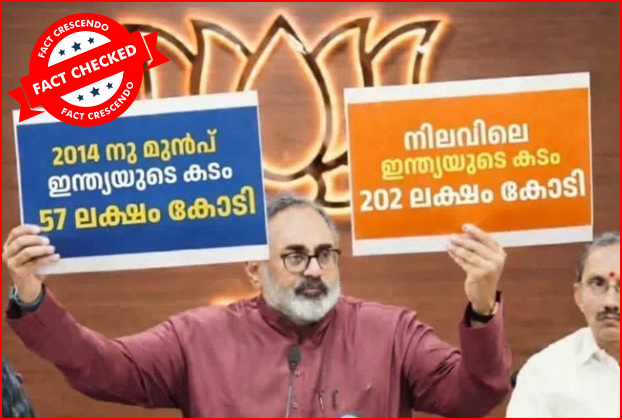 ഇന്ത്യയുടെ കടബാധ്യത എത്രയെന്നുള്ള പ്ലക്കാര്‍ഡുകള്‍, ബിജെപി സംസ്ഥാന അധ്യക്ഷന്‍ രാജീവ് ചന്ദ്രശേഖര്‍ വാര്‍ത്താസമ്മളനത്തിനിടെ ഉയര്‍ത്തിക്കാട്ടിയെന്ന് അവകാശപ്പെട്ട്  ഒരു ചിത്രം പ്രചരിക്കുന്നുണ്ട്. 2014ന് മുന്‍പ് 57 ലക്ഷം കോടി രൂപയായിരുന്ന ഇന്ത്യയുടെ കടബാധ്യത നിലവില്‍ 202 ലക്ഷം കോടി രൂപയായി ഉയര്‍ന്നുവെന്ന തരത്തില്‍ രണ്ട് പ്ലക്കാര്‍ഡുകള്‍ അദ്ദേ പ്രചരണം  “2014 നു മുൻപ് ഇന്ത്യയുടെ കടം 257 ലക്ഷം കോടി  നിലവിലെ ഇന്ത്യയുടെ കടം 202 ലക്ഷം കോടി” എന്നെഴുതിയ രണ്ടു പ്ലക്കാര്‍ഡുകളാണ് രാജീവ് ചന്ദ്രശേഖര്‍ ഉയര്‍ത്തിക്കാട്ടുന്നത്. അദ്ദേഹത്തിന്റെ […]
