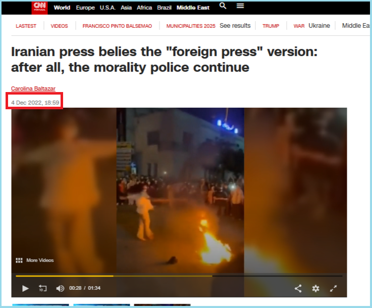 ഈ ദൃശ്യങ്ങളുടെ സ്ക്രീൻഷോട്ടുകൾ ഗൂഗിളിൽ റിവേഴ്സ് ഇമേജ് അന്വേഷണം നടത്തി പരിശോധിച്ചപ്പോൾ ഈ ദൃശ്യങ്ങൾ പഴയതാണെന്ന് കണ്ടെത്തി. ഈ ദൃശ്യങ്ങൾ 2022ൽ ഇറാനിൽ ഹിജാബിനെതിരെ നടന്ന പ്രതിഷേധത്തിൻ്റെതാണെന്ന് സി.എൻ.എൻ. 4 ഡിസംബർ 2022ന് റിപ്പോർട്ട് ചെയ്യുന്നു. റിപ്പോർട്ടിൻ്റെ സ്ക്രീൻഷോട്ട് നമുക്ക് താഴെ കാണാം.
