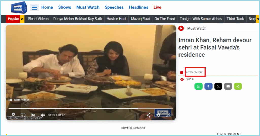 ഞങ്ങൾ ഈ ചിത്രത്തിനെ ഗൂഗിളിൽ റിവേഴ്സ് ഇമേജ് അന്വേഷണം നടത്തി പരിശോധിച്ചപ്പോൾ ഞങ്ങൾക്ക് ഈ ചിത്രം ദുൻയ ടിവി എന്ന പാകിസ്ഥാനി മാധ്യമ വെബ്സൈറ്റിൽ ലഭിച്ചു.