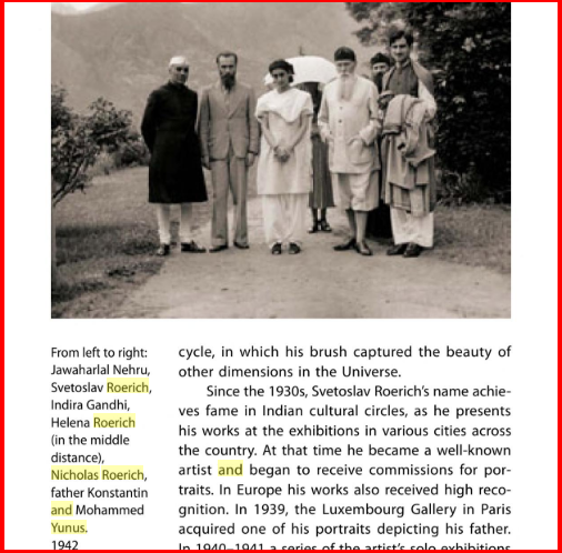 ചിത്രത്തില് നെഹ്രുവും, റോറിച്ചും, ഇന്ദിര ഗാന്ധിയോടൊപ്പം നമ്മള് കാണുന്നത് കോണ്ഗ്രസ് നേതാവും സ്വതന്ത്ര സമരം സേനാനിയായ മുഹമ്മദ് യുനുസ് ആണ്. ഇദ്ദേഹം തുര്ക്കി, സ്പൈന്, ഇന്ഡോനേഷ്യ, ഇറാക്ക് എന്നി രാജ്യങ്ങളില് ഇന്ത്യയുടെ പ്രതിനിധിയായി സേവിച്ചിട്ടുണ്ട്.