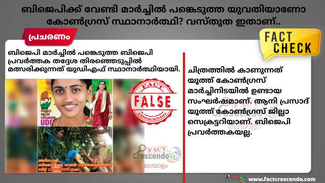 Title:ബിജെപിക്ക് വേണ്ടി മാര്ച്ചില് പങ്കെടുത്ത യുവതിയാണോ കോണ്ഗ്രസ് സ്ഥാനാര്ത്ഥി? വസ്തുത ഇതാണ്..