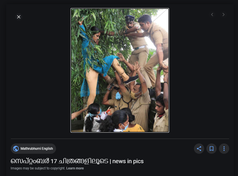 പിന്നീട് ബിജെപിയുടെ സമരത്തില് പങ്കെടുത്ത ചിത്രമെന്ന പേരില് ആരോപണം ഉന്നയിക്കപ്പെട്ട ചിത്രത്തെ കുറിച്ചാണ് അന്വേഷണം നടത്തിയത്. പോസ്റ്റില് ഉപയോഗിച്ച് പൊലീസ് സംഘര്ഷത്തിന്റെ ചിത്രം ക്രോപ്പ് ചെയ്തത് റിവേഴ്സ് ഇമേജ് സെര്ച്ച് ചിയ്തപ്പോള് മാതൃഭൂമി ഓണ്ലൈനില് സെപ്റ്റംബര് 17 ചിത്രങ്ങളിലൂടെ എന്ന തലക്കെട്ട് നല്കിയ തലസ്ഥാനനഗരിയില് നടന്ന പൊതുപരിപാടികളുടെയും സമരങ്ങളുടെയും ചിത്രങ്ങള് പങ്കുവെച്ചിരിക്കുന്നതായി കാണാന് കഴിഞ്ഞു. ചിത്രങ്ങളുടെ നീണ്ട നിരയില് ഏറ്റവും ഒടുവില് നല്കിയിരിക്കുന്ന ചിത്രം ആനി പ്രസാദ് പോലീസുമായി കയ്യേറ്റത്തില് കലാശിച്ചതിന്റേതാണ്. സെപ്റ്റംബര് 16ന് സംഭവത്തിന് ആസപ്ദമായ യൂത്ത് കോണ്ഗ്രസ് മാര്ച്ചിന്റെ മറ്റ് ചില ചിത്രങ്ങള് ആനി പ്രസാദ് തന്റെ ഫെയ്സ്ബുക്ക് പ്രൊഫൈലില് പങ്കുവെച്ചിട്ടുണ്ട്. ഇതെ വേഷത്തില് തന്നെയുള്ള ചിത്രങ്ങളാണിവ. അതായത് യൂത്ത് കോണ്ഗ്രസ് മാര്ച്ചിനിടയില് പോലീസുമായി ഉണ്ടായ സംഘര്ഷത്തിന്റെ ചിത്രമാണ് ബിജെപിയുടെ മാര്ച്ചില് പങ്കെടുത്ത യുവതി കോണ്ഗ്രസില് മത്സരിക്കുന്നു എന്ന പേരില് പ്രചരിപ്പിക്കുന്നതെന്ന് വ്യക്തം.