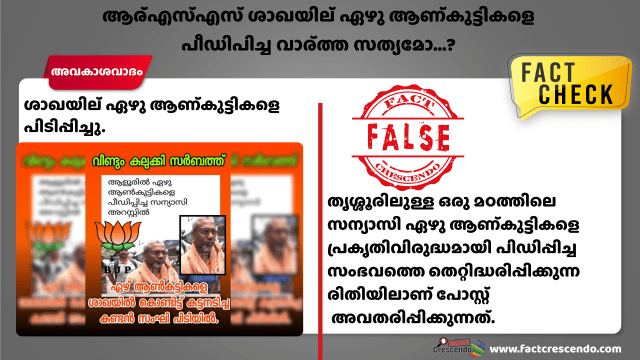 Title:ആര്എസ്എസ് ശാഖയില് ഏഴു ആണ്കുട്ടികളെ പീഡിപിച്ച വാര്ത്ത സത്യമോ…?
