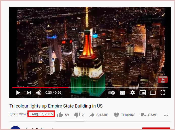 എമ്പായര് സ്റ്റേറ്റ് കെട്ടിടത്തിനെ ഇന്ത്യയുടെ ദേശിയ പതാകയുടെ ത്രിവര്ണ്ണ നിറങ്ങളില് പ്രകാശിപ്പിക്കുന്നത് ഇത് ആദ്യ സംഭവം ആയിരിക്കില്ല. ഇതിനെ മുമ്പേയും ഇങ്ങനെ നടന്നിട്ടുണ്ട്. 2015ലെ വന് ഇന്ത്യയുടെ ഒരു വാര്ത്ത നമുക്ക് താഴെ കാണാം. ഇന്ത്യയുടെ സ്വതന്ത്രദിനത്തിന്റെ ആഘോഷങ്ങളുടെ ഭാഗമായി എമ്പയര് സ്റ്റേറ്റ് കെട്ടിടം ഇന്ത്യയുടെ ദേശിയ പതാകയുടെ ത്രിവര്ണ്ണ നിറങ്ങളില് പ്രകാശിപ്പിച്ചു എന്ന് വാര്ത്തയില് പറയുന്നു.
