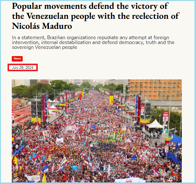 മുകളിൽ നൽകിയ പോസ്റ്റിൽ ഒരു വമ്പൻ മാർച്ചിൻ്റെ ചിത്രം കാണാം. പോസ്റ്റിൻ്റെ അടികുറിപ്പിൽ പറയുന്നത് ഇങ്ങനെയാണ്: “തോൽക്കാൻ മനസ്സില്ലാത്ത വെനിസ്വേല. അമേരിക്കൻ അധിനിവേശത്തിനെതിരെ പ്രതിഷേധമിരമ്പുന്നു.”