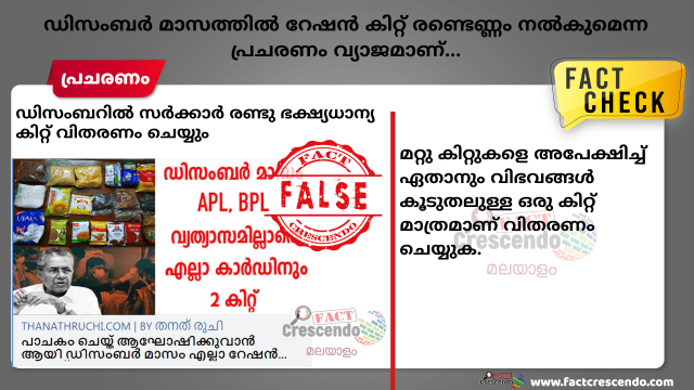 Title:ഡിസംബര് മാസത്തില് റേഷന് കിറ്റ് രണ്ടെണ്ണം നല്കുമെന്ന പ്രചരണം വ്യാജമാണ്…