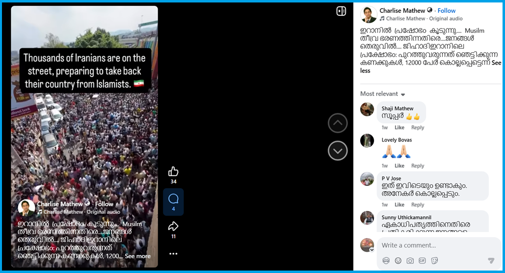 Title:ഇറാനിലെ പ്രക്ഷോഭം എന്ന് പ്രചരിപ്പിക്കുന്നത് ഗുഹാവത്തിയിലെ പഴയ ദൃശ്യങ്ങള്…